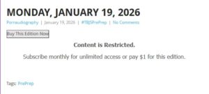 We have launched a new option for those who don’t need a monthly subscription to our #TBJSPrePrep show prep service! We now offer each NEW weekday edition for only $1.00 each for those who do not have a monthly subscription to our services! This option is a great addition for when radio show hosts need something extra without being attached with a monthly re-accruing bill. This would be a great option for those working part-time and those who can’t find enough showprep on their own or their primary source isn’t supplying enough useable information.